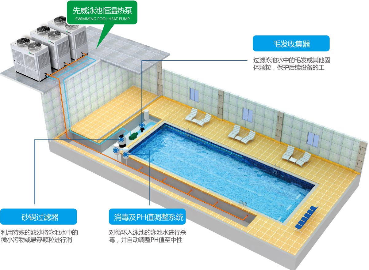 泳池熱泵如此通過制冷劑的不斷循環與泳池池水交換熱量將水加熱,同時在運行中不釋放附加熱能,不排放有害物質,工質與池水完全分開,不會造成二次污染,屬于節能環保產品,故在倡導節能環保的今天,泳池熱泵必將迎來高速的發展。